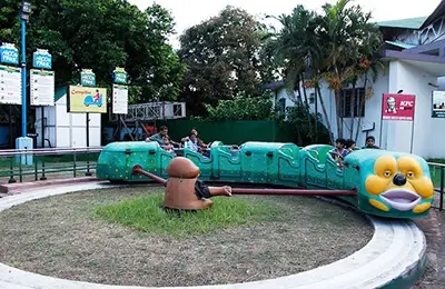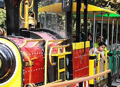 The toy train has eight bogies powered by diesel engine. Listen to rhythmic music and enjoy the sights and sounds while travelling through the Park.
