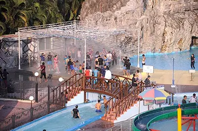 The “Thunder Bowl” ride is popular in water parks the world over. Two riders on a raft descend from a tower height of 40ft. through a tunnel length of 195ft. until they reach a big bowl of 40ft. diameter for two circular exciting revolutions and will finally exit into a sofa landing. Enjoy the rides at the best water resort in kolkata.